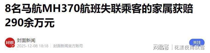所有因为MH370遇难的家属都将获得马航公司赔付的290余万人民币的赔偿,截止到2026年1月份,这起案件中90%的遇难者家属都完成了理赔。